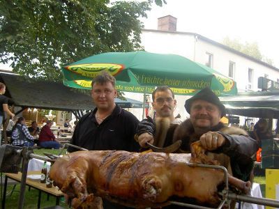 Gute Freunde helfen bei Mittelalterfest mit Volker Otto vom gleichnahmigen Partyservice aus Mylau,die gute Seele des Hauses unser Nico sowie der Räuberwirt selbst.